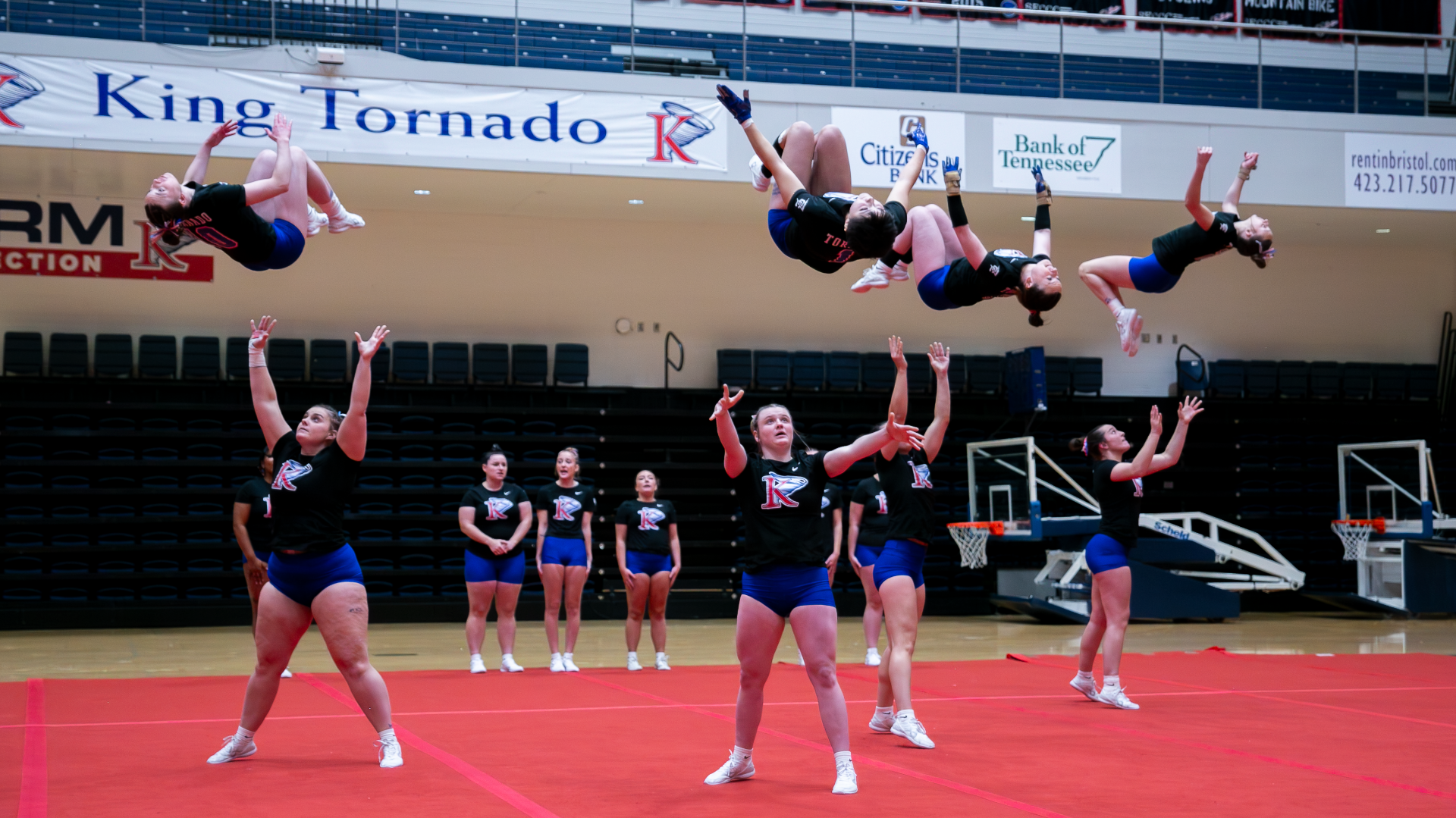 ADRIAN, Mich. – The King University acrobatics and tumbling team took the mat for the first time in a competition on Sunday when they faced Adrian College. The Tornado held a halftime lead, but the Bulldogs came back to take the 236.41-234.63 victory in the first meet for both teams.